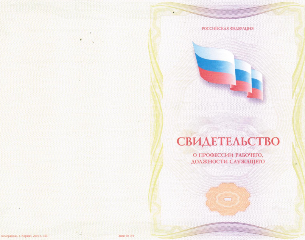 | Документ об образовании | свидетельство гос. образца |